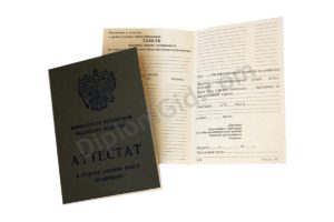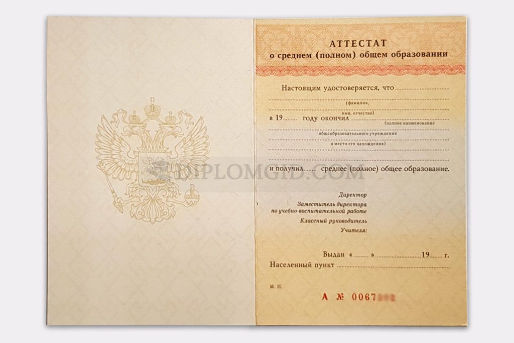На нашем сайте Вы можете аттестат о среднем общем образовании (11 классов) без обучения, выданный любым школой Москвы и других городов России в период с 1994 по 2006 год. В комплект входит бланк, обложка и приложение, оформленные по всем стандартам.