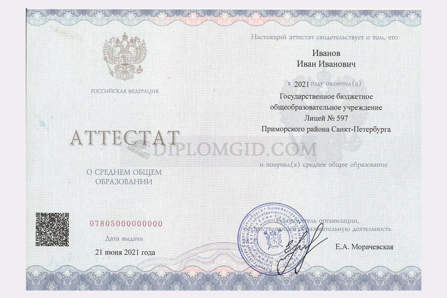 Аттестат за 11 класс 2021-2026 года с QR кодом